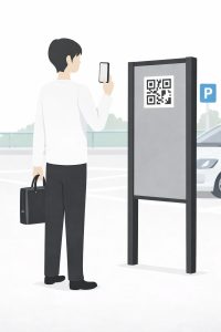 今回新たに、スマートフォンのWebブラウザから直接アクセスすることで、駐車料金の支払いができる決済方法を導入します。駐車場内にQRコードを掲載した看板などを設置し、ご利用者がQRリーダーの読込みを行うことで支払いサイトにリンクします。